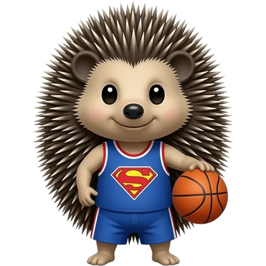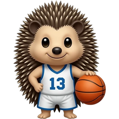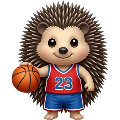 Hedgehog with super fun jersey , playing basketball front facing emoji