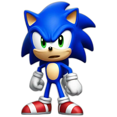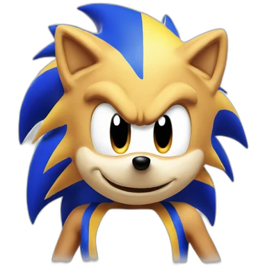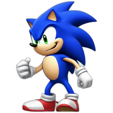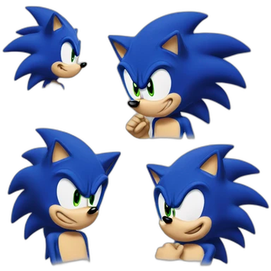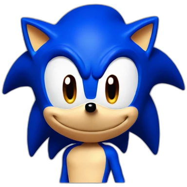 Sonic the Hedgehog,a blue hedgehog with green eyes and blue fur he has 3 spines in the middle 2 up and down he has a smirk and a black round nose emoji