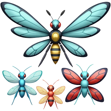 Vikavolt-Beedrill-Venonat-Genesect-Pokémon, full body emoji