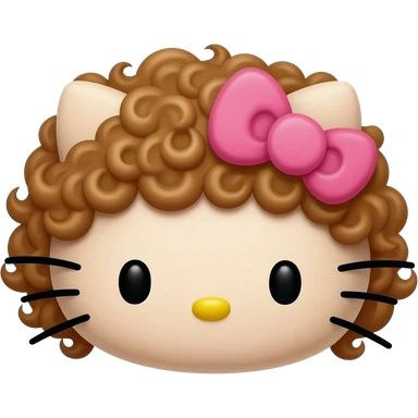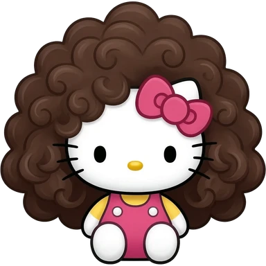 Hell Kitty com cabelo cacheado lindo e castanho escuro e franjinha cacheada emoji