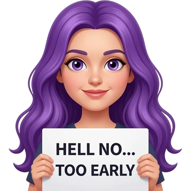 sexy girl with long purple hair and purple eyes holding a HELL NO... TOO EARLY sign emoji