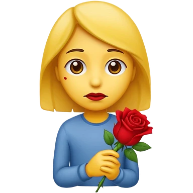 una faccina emoji triste che porge una rosa di fronte emoji