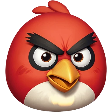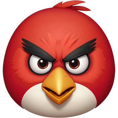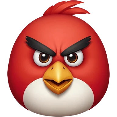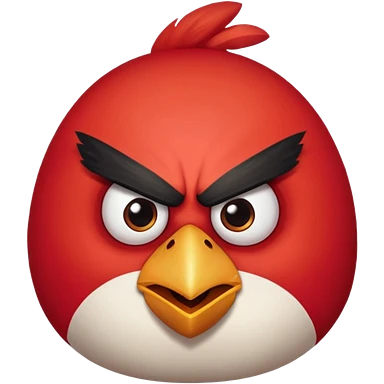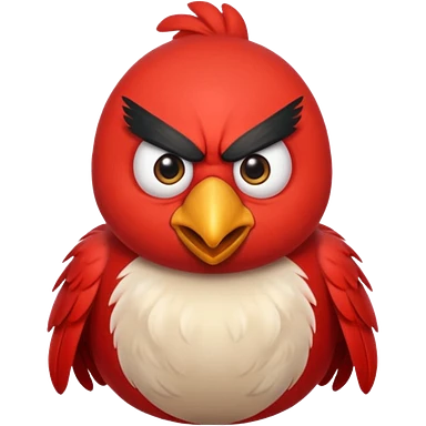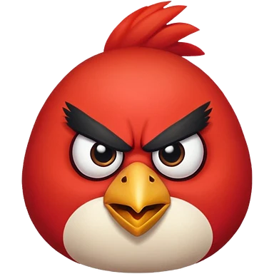 Red angry bird from Angry Birds game with triangular eyebrows and angry expression emoji