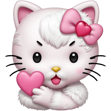 Hello kitty qui fait un bisous avec sa bouche et un cœur rose sort de sa bouche emoji