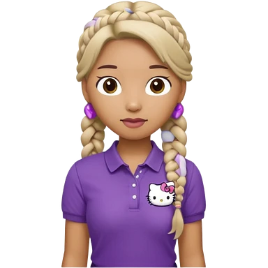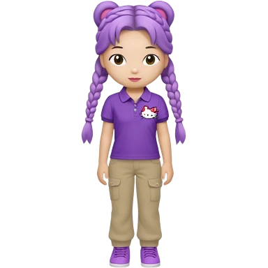 hello kitty wearing purple polo shirt and kyaki pants with long fishtail braids baddie emoji