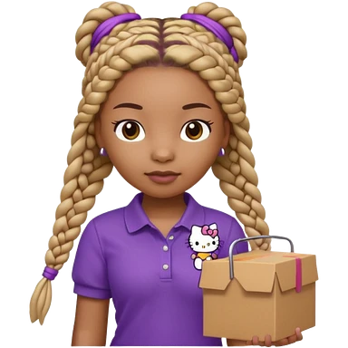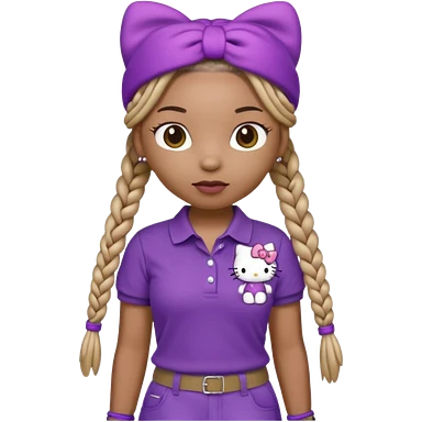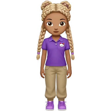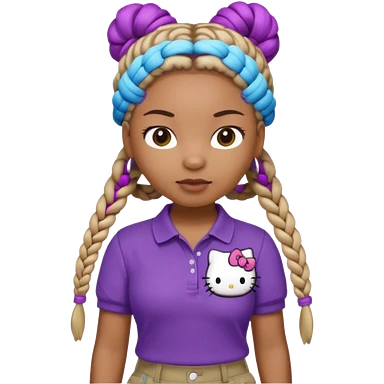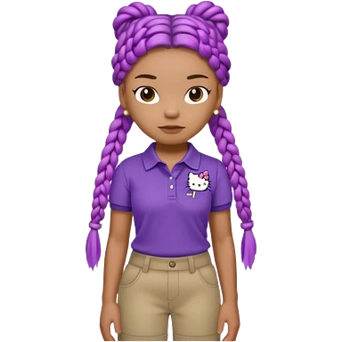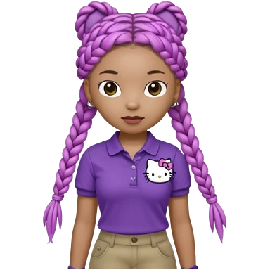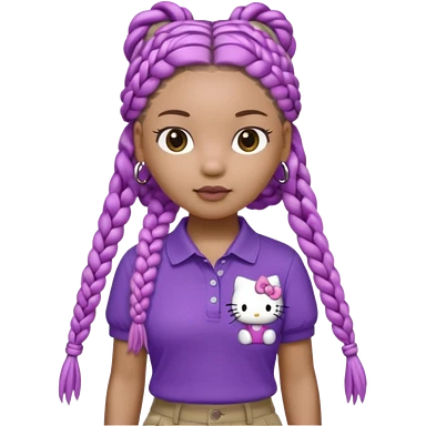 hello kitty wearing purple polo shirt and kyaki pants with long box braids baddie emoji