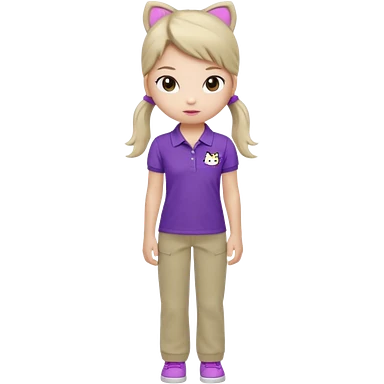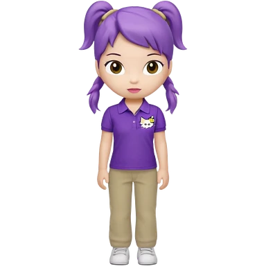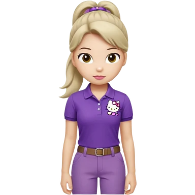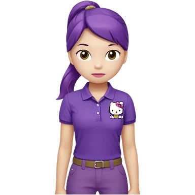 hello kitty wearing purple polo shirt and kyaki pants with long pony tail baddie emoji
