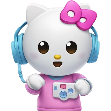 hello kitty winking and sticking out tounge holding up peace sign emoji