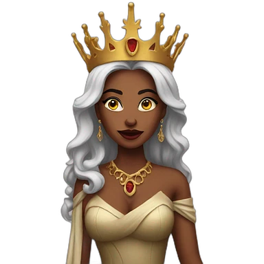 old Vampire lady Pale queen with ruby necklace, curly black long hair emoji