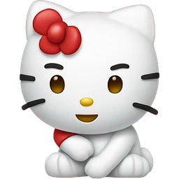 hello kitty sanrio design, white cat with 3 whiskers, black eyes, small yellow nose, no mouth, red bow on the left ear emoji