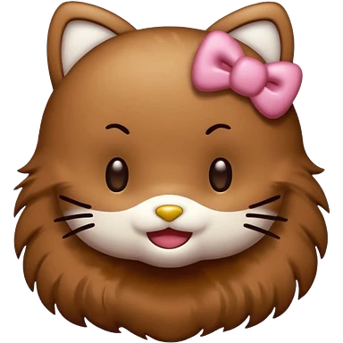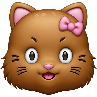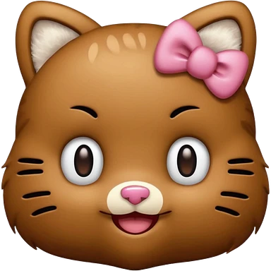 brown hello kitty, no mouth, button eyes, blue bow, emoji