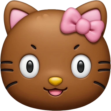Create an emoji-style face of Hello Kitty with BROWN skin. She should have her iconic round face with no mouth, black oval eyes, and a yellow nose. Replace her usual bow with a pink or red hibiscus flower tucked behind one ear emoji