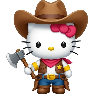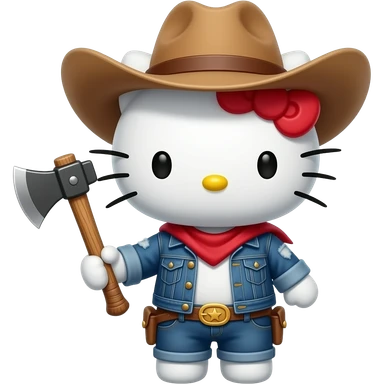 hello kitty disfrazado de rodia con su hacha con su cazadora raída sin sombrero emoji