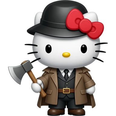 hello kitty disfrazado de rodia Raskolnikov de dostoievsky con su hacha emoji