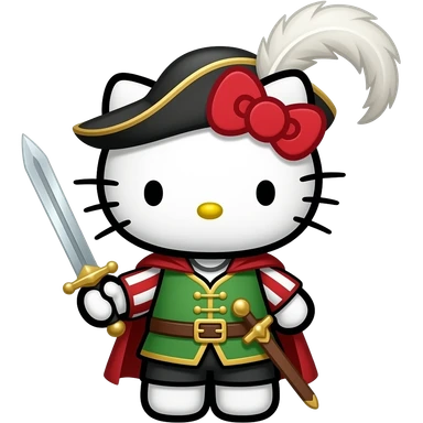 hello kitty disfrazado del caballero de d´artagnan emoji