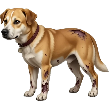 Cachorro de rua mendigo sujo fedido com lixo sem coleira emoji