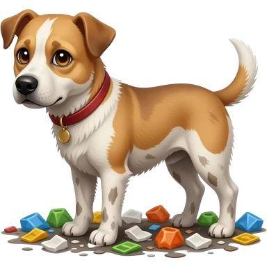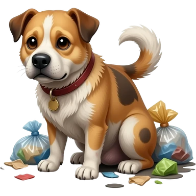 Cachorro de rua mendigo sujo fedido com lixo emoji