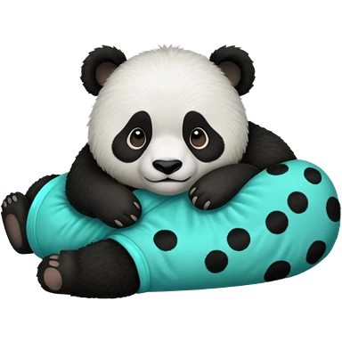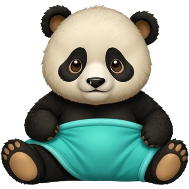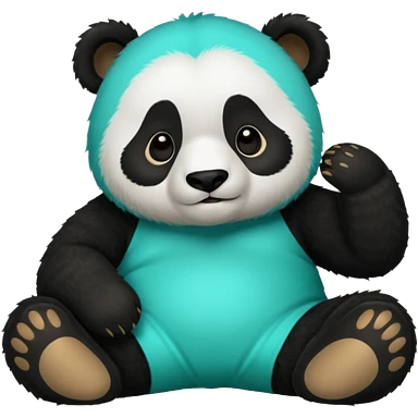 make a cute dark green panda with some furry cyan pjs laying down emoji