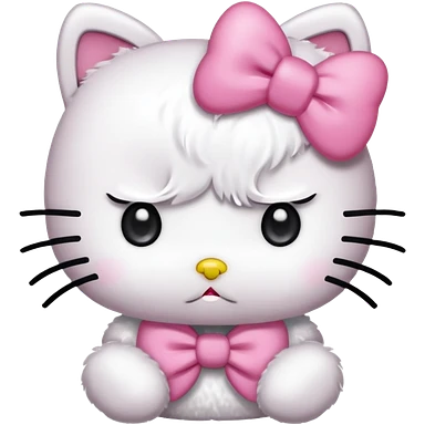 Hello Kitty from Sanrio, close-up face, big teary eyes, red bow, subtle sad expression emoji | AI Emoji Generator