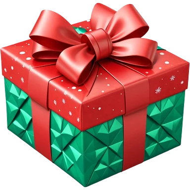 Hyperrealism, 3D rendering, christmas box, wrapped in repeated patterned futuristic wrapping paper, with a big realistic sparkling bow emoji