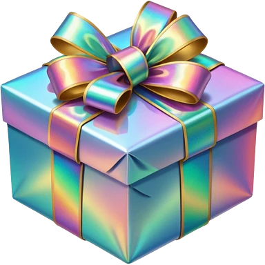 Hyperrealism wrapped christmas gift, with realistic detailed iridescent holographic ribbon emoji
