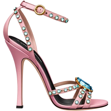 Hyperrealism, Dolce & Gabbana pair of Pink Leather Crystal Heels Sandals Shoes, side view isolated emoji