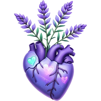 create a holographic lavender plant that wraps around a lavender colored heart emoji