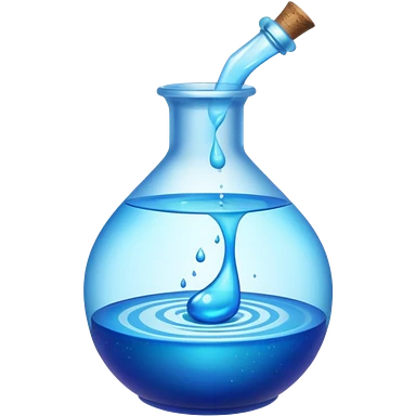 Blue potion bottle open with the liquid falling out (Upside-down with no cork and w/o handle) emoji