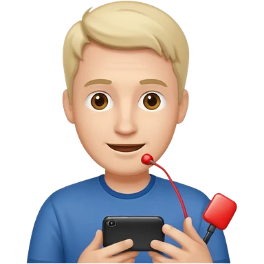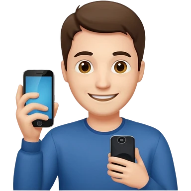 casual man holding phone and happly staring it emoji