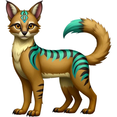 Colorful dark tropical tribal glorious divine exotic cute cool beautiful beautiful fantasy-caracal-civet-genet-sergal-vernid-Gryphon-Cacomistle-Trico-oncilla-animal-Fakémon-hybrid-fursona (full body) emoji