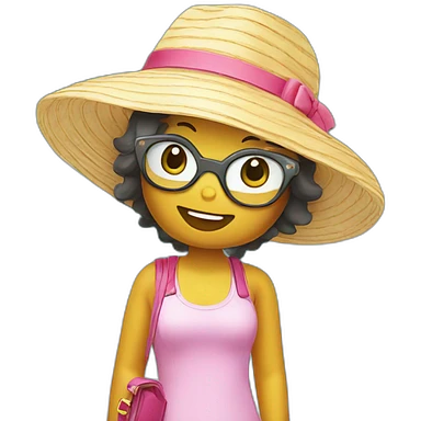lady with vacation hat holding drink emoji