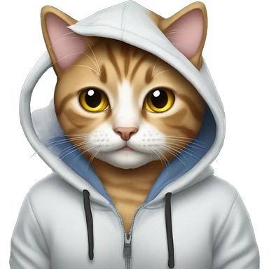 Cat wearing hello kotty hoodie emoji