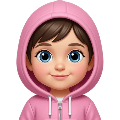 A girl have blue eyes and dark blonde hair and wearing a hello kitty hoodie emoji