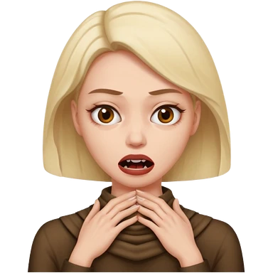 Woman with her hands around her neck making a scary face emoji