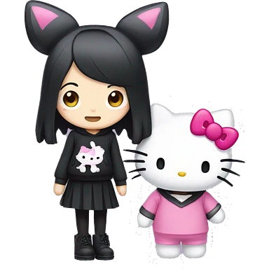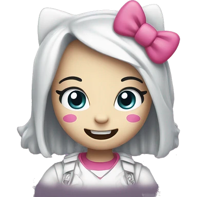 gothic Hello Kitty with a mischievous smile, gothic makeup, iOS emoji style emoji