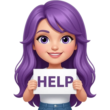 sexy girl with long purple hair holding a HELP sign emoji