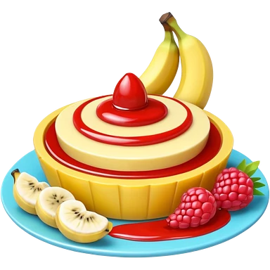 tart with sweet sous and fruit with banana food in 3d style no faces emoji