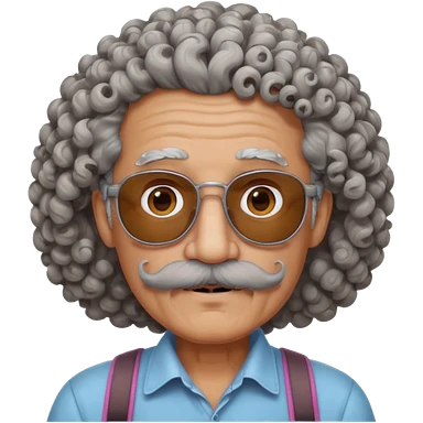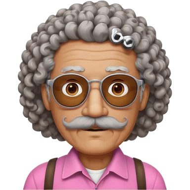 old guy with very curly hair and brown shades and big pink mustache emoji