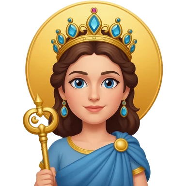 Hera from Greek Mythology with blue eyes, long brown hair, blue metallic peplos emoji