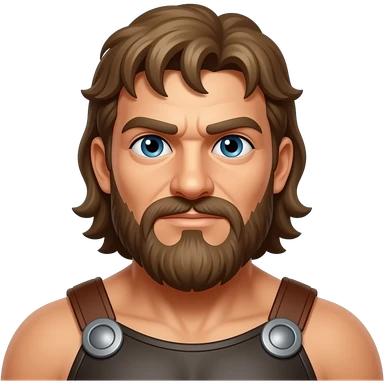 Hercules from The Olympians with long brown wavy hair and beard, bronze toga emoji