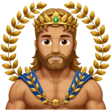 Cinematic Realistic Hercules Portrait, depicted as a classical Greek hero merging the fierce masculinity of the lion-wrestling Hercules with the refined face of Michelangelo's David. His light tan, chiseled skin glows with timeless strength, and his thick, curly, golden brown hair cascades in natural, sculpted curls reminiscent of a warrior’s mane. Draped in a flowing white robe with delicate golden accents and crowned with a traditional Greek laurel wreath, his intense, determined eyes exude noble might, all rendered under dynamic natural lighting with a mythic, radiant glow. emoji