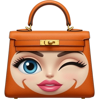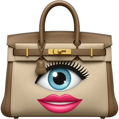 hermes bag with women eye and lashes and smiling creamy color bag emoji