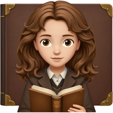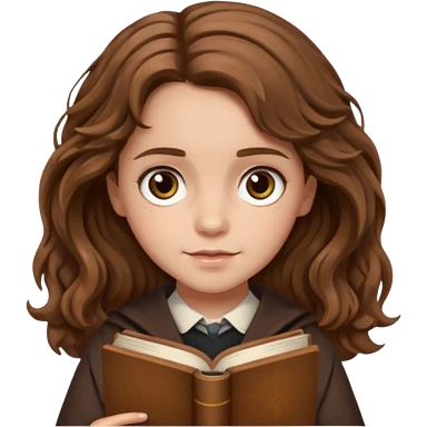 Hermione Granger with wavy hair and brown book in hand emoji