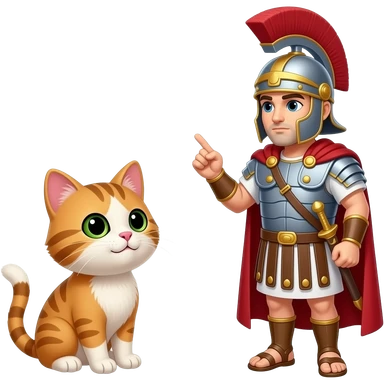 Un gatito enfrentandose al centurion romano que le hace preguntas de gramatica del latin emoji