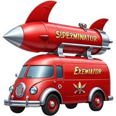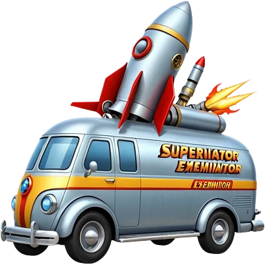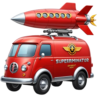 Heroic SuperBug hot rod Ron’s exterminator superminator antique rocket-powered tall robot transit van (motto: bug out rocket Bombing creepy bugs is fun) emoji