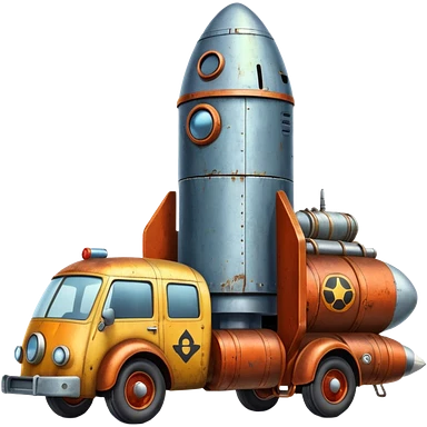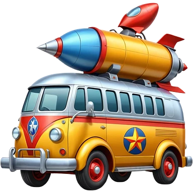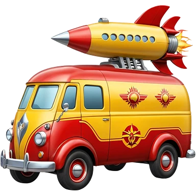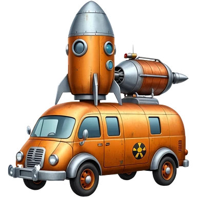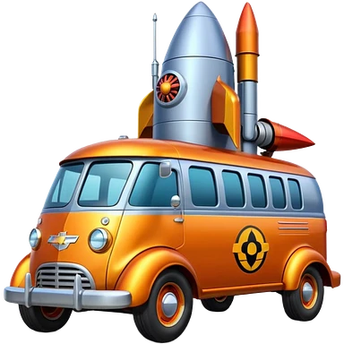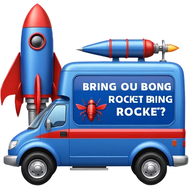 Heroic SuperBug Ron’s exterminator superminator antique rocket-powered tall robot transit van (motto: bug out rocket Bombing creepy bugs is fun) emoji