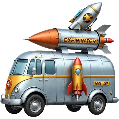 Heroic SuperBug Ron’s exterminator superminator antique rocket-powered tall robot transit van (motto: bring g out rocket Bombing creepy bugs is fun) emoji