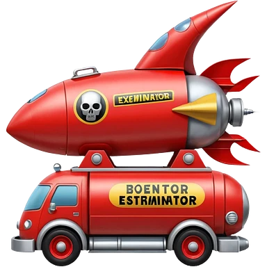 Heroic superhero SuperBug flintstones Ron’s superminator futuristic rocket-powered tall robot moving van (motto: Bombing creepy bugs is fun) emoji | AI Emoji Generator