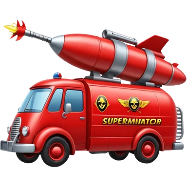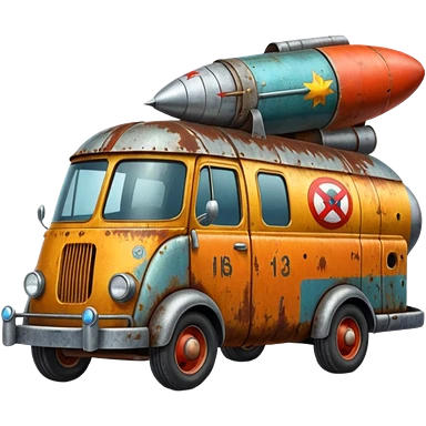 Heroic SuperBug Ron’s exterminator antique rocket powered moving van (motto: Killing bugs is fun) emoji