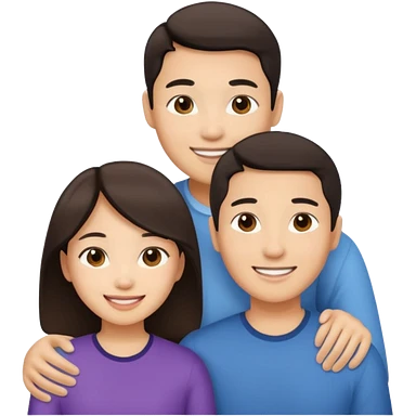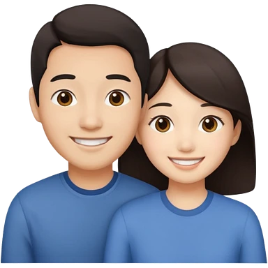 Una pareja heterosexual. La chica de piel blanca pero bronceada (española), pelo al estilo wolfcut castaño oscuro, ojos marrones. El chico de piel blanca, ojos azules y pelo castaño claro, tirando para rubio oscuro. emoji